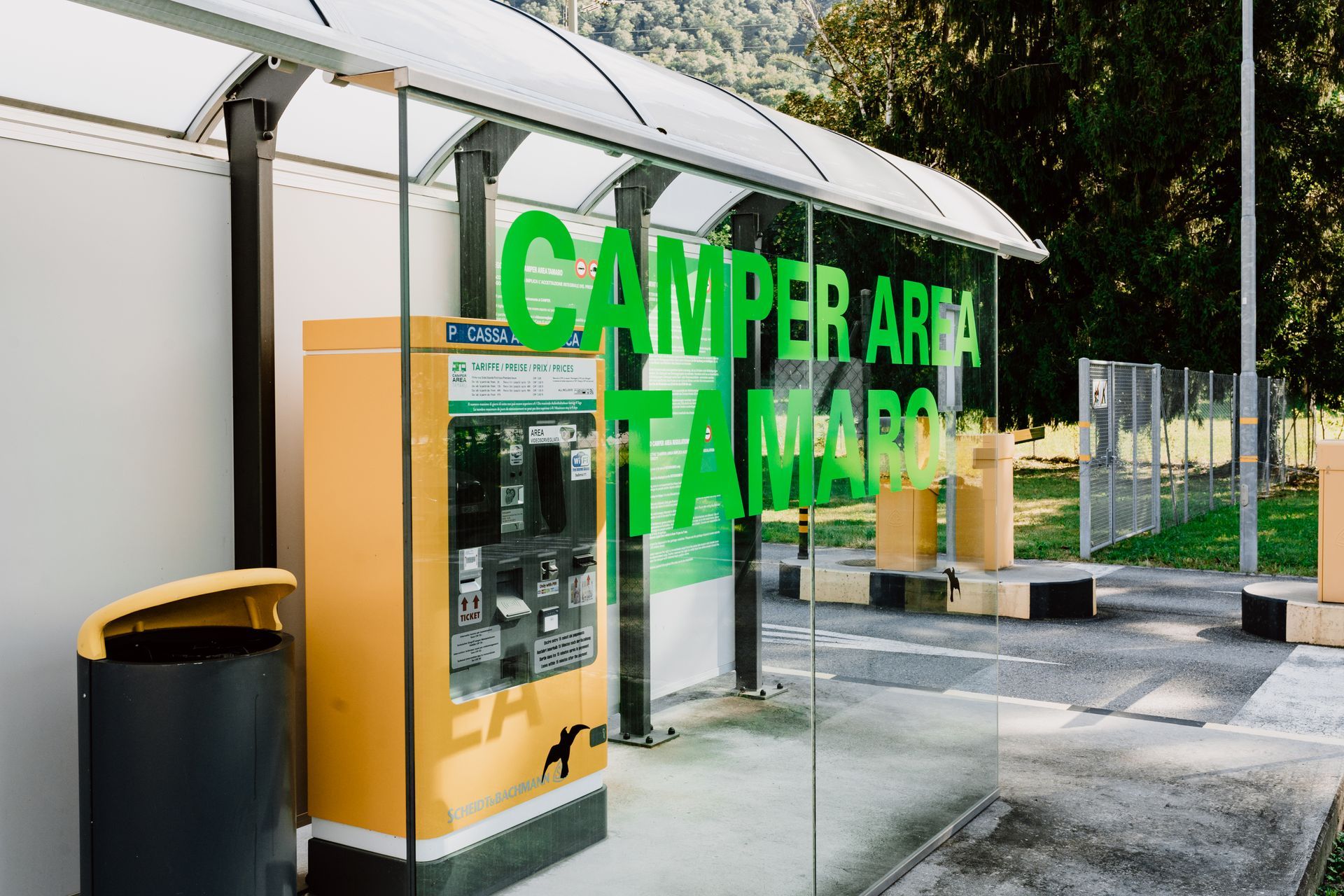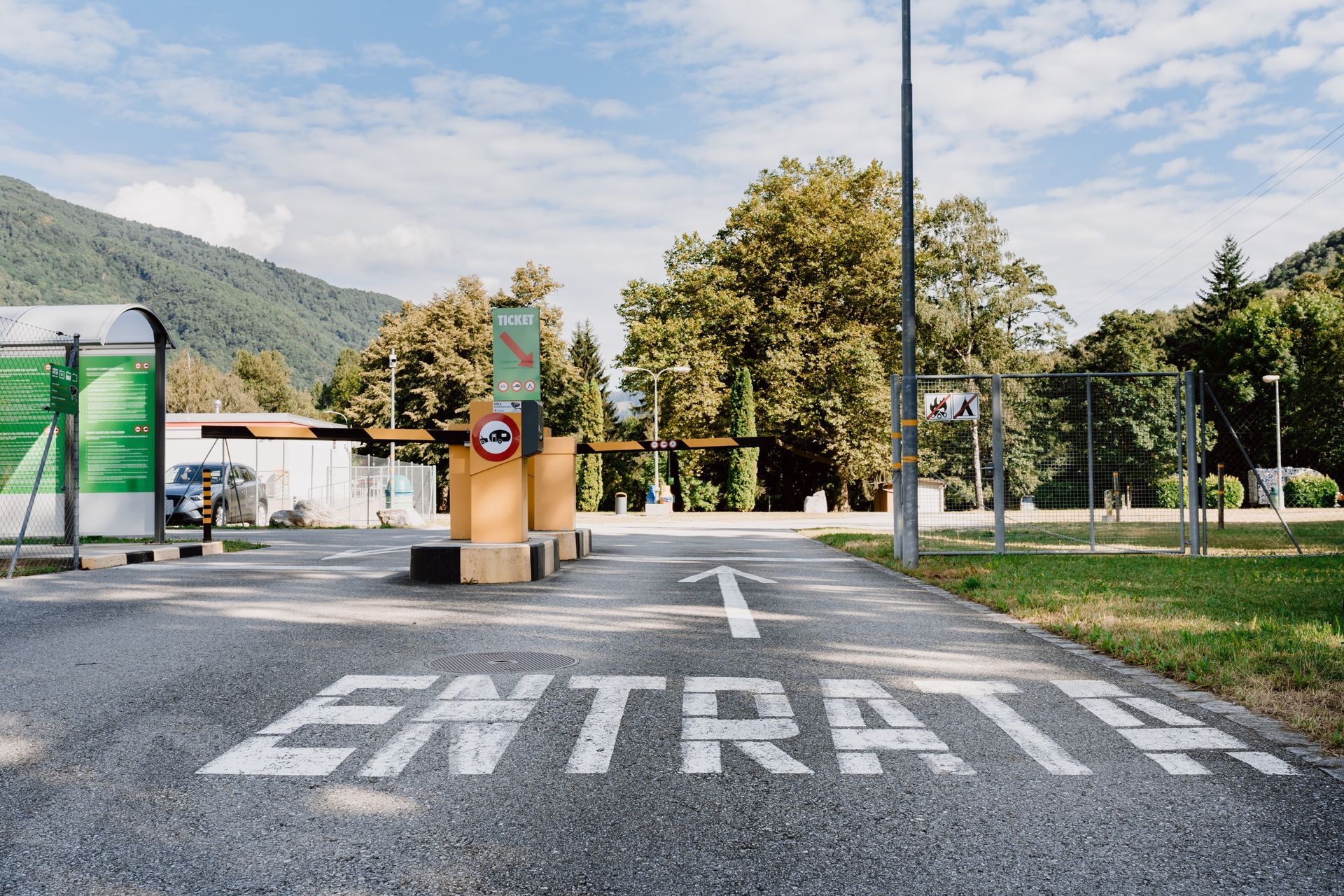 Très pratique pour s'arrêter entre la France et l'Italie. Beaucoup d'emplacements (je dirais plus de 50) tous avec électricité. Un robinet d'eau a l'entrée. Pas de sanitaires ni douches ni éviers mais on a ce qu'il faut dans le camping car. Borne pour payer a toute heure. Snack juste de l'autre côté de la rue dans une petite station service. Rien autour a faire a pied. Au bord de la route très fréquenté, réveillé tôt par les gros moteurs. Vert et bien arboré. 27€ la nuit.